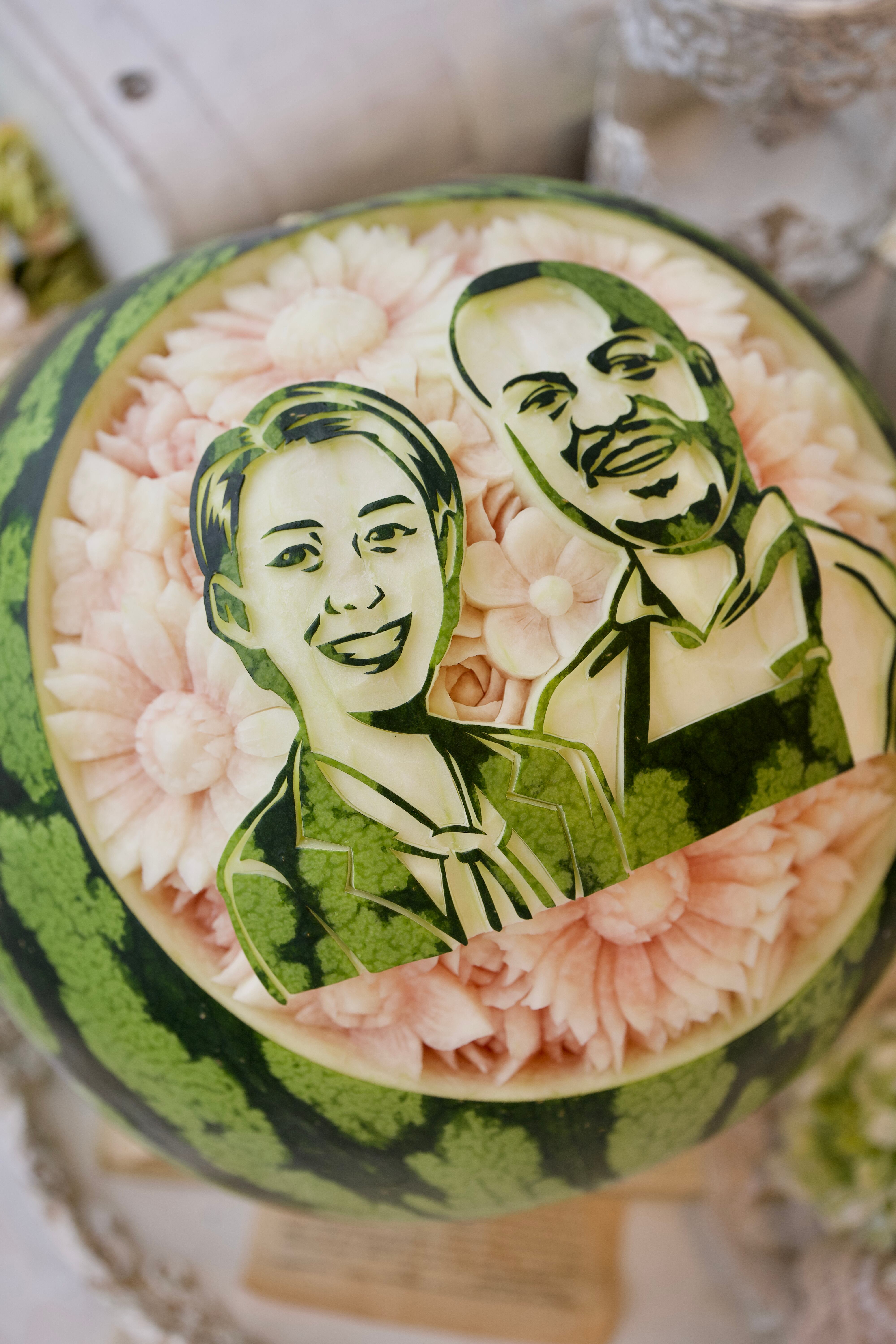 似顔絵(2名) お祝いスイカ お誕生日・結婚式・周年のお祝いに